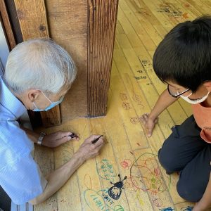 いつも応援してくださってる方が来られ、「何か書きますか?」と一番に声をかけてくれたかずき。書くものがないので自分のふでばこからマジックを出してくれました。