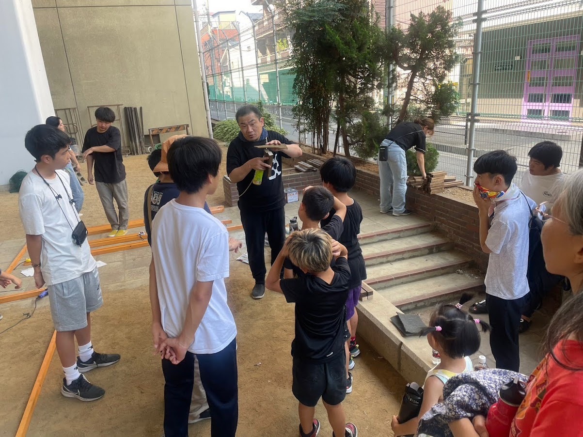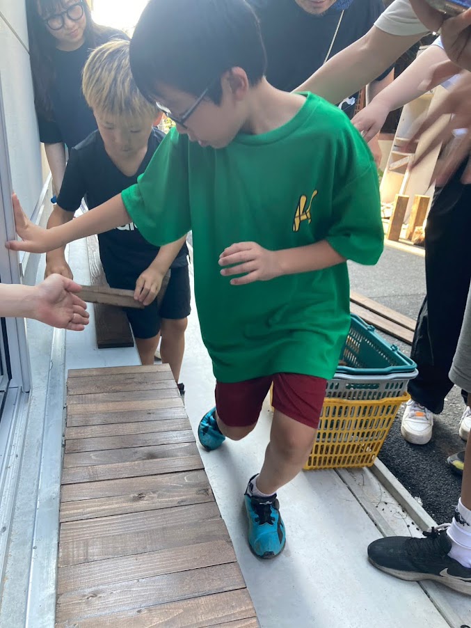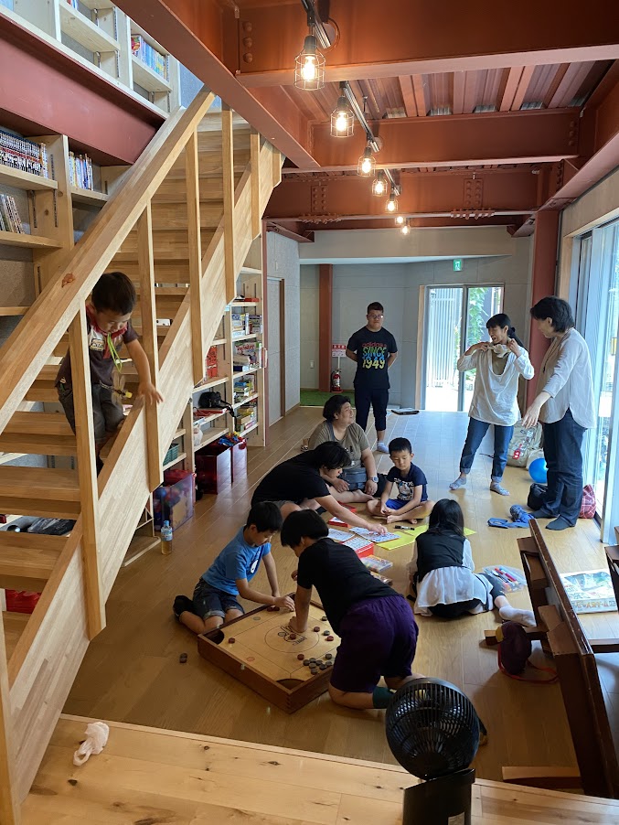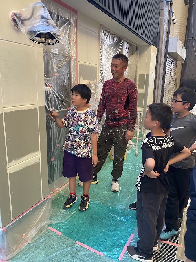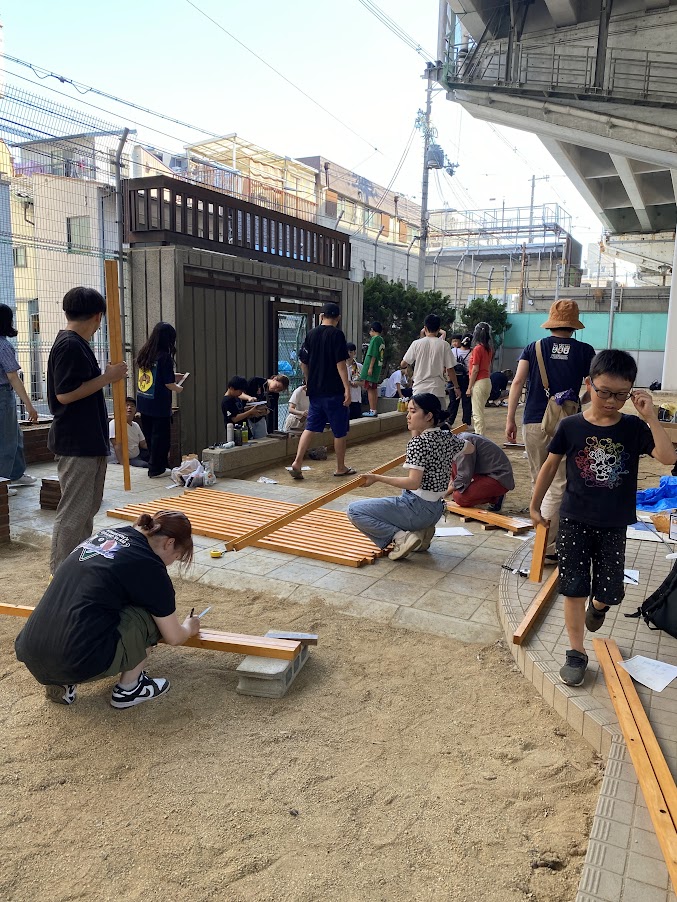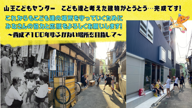 ついに山王こどもセンター・おとなセンターの建物が完成しました。2023年6月末に基本的な工事を終え、ワークショップでこども達と一緒に仕上げていきました。ワークショップには、近畿大学建築学科寺川政司先生をはじめ学生の皆さんや株式会社LeTechの皆さん、また職人さん達と格子や縁側のベンチ、リアカーのペイント、各部屋の看板作りを行ってきました。寺川先生と学生のみなさんが、毎日のように通い詰めて完成に向けて作業をしてください、こども達はその作業の様子をみて、一緒に手伝ったり眺めたりしていました。
